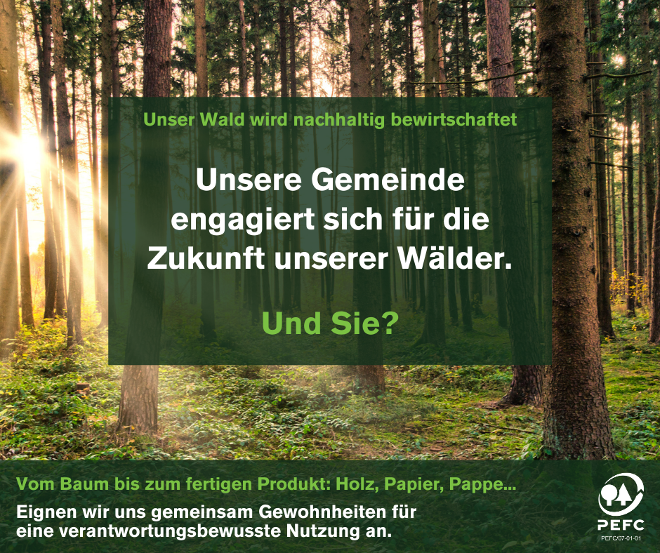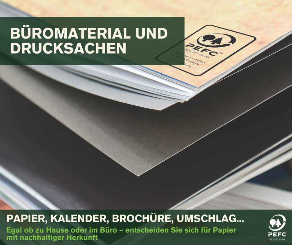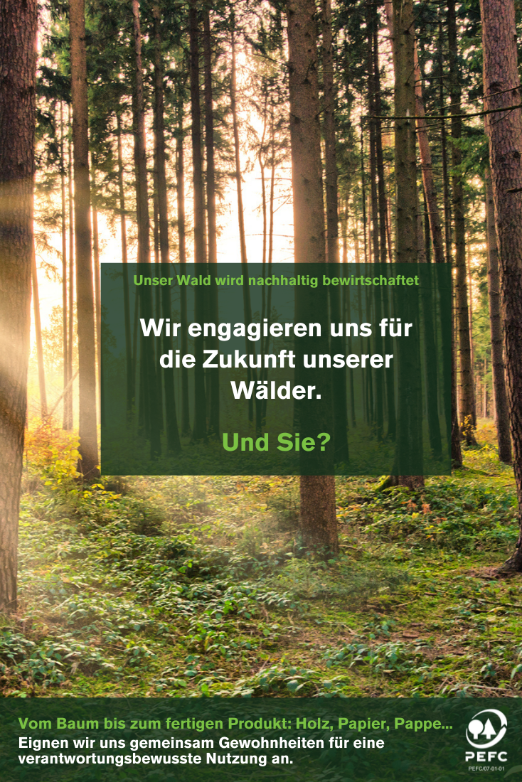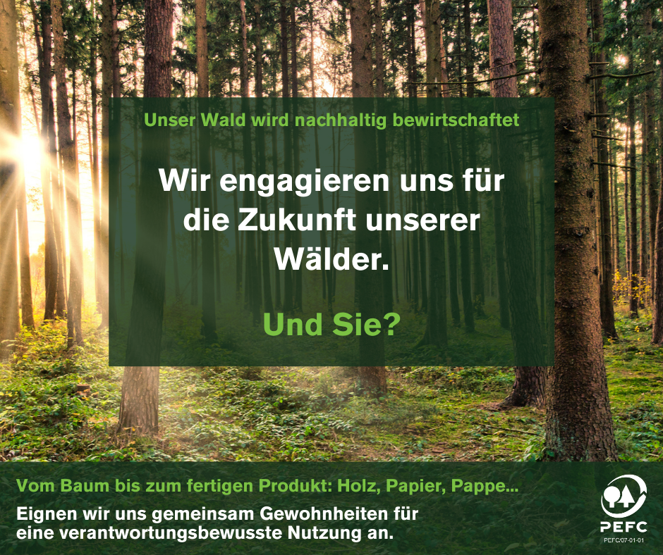 Ihre Mitteilungen, Zeitungen und sonstigen Broschüren sind auf PEFC-zertifiziertem Papier gedruckt? Bitten Sie Ihre Druckerei ihr eigenes PEFC-Logo aufzubringen.
